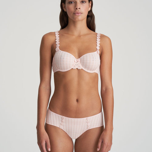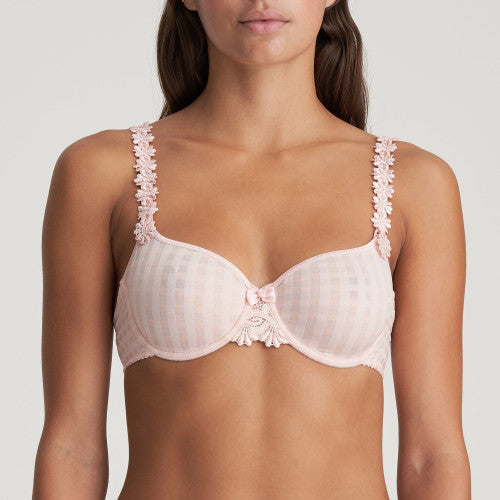 This underwire bra has seamless cups. Wear the straps over the shoulders or around the neck. Whimsical light pink is a vibrant, summery alternative to nude.