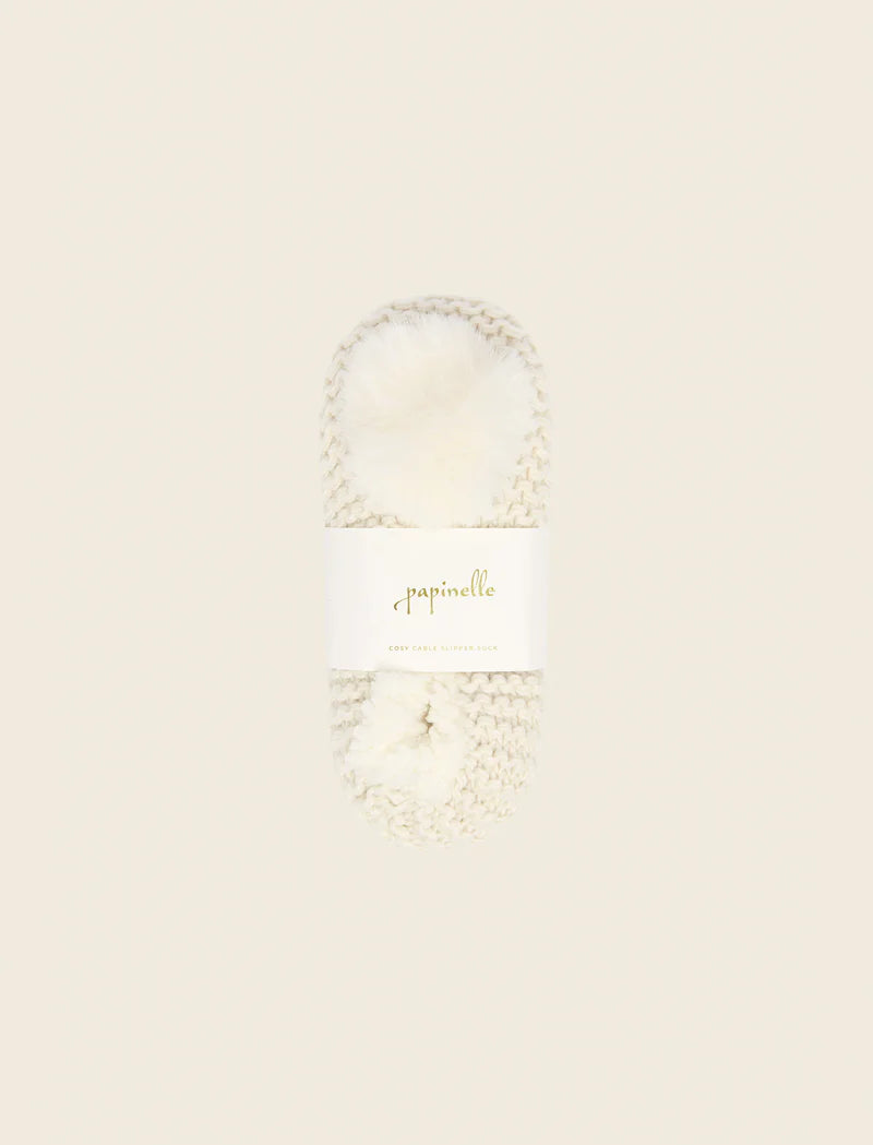Stay warm and stylish with our Cosy Cable Slipper Socks. Crafted from soft, snug fabric, these socks feature a textured cable knit design. Perfect for lounging at home.