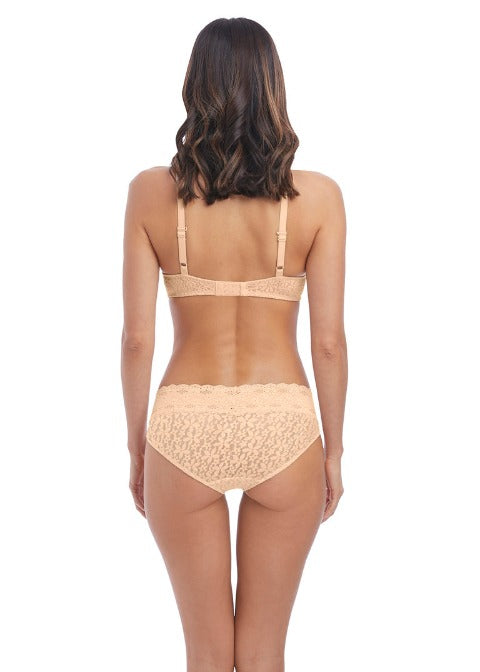 - Moulded stretch brushed back all-over lace is soft and smooth against the body