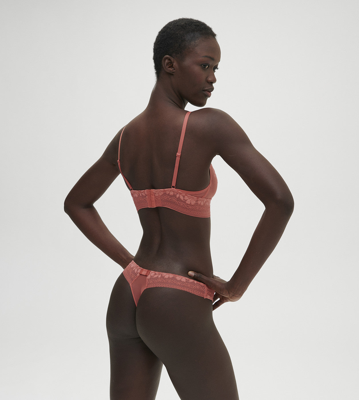 Minimalist design meets boho-inspired style in the classic black Héloïse Thong. Crafted from tulle and semi-sheer lace adorned with vibrant florals and modern broderie anglaise embroidery, this g-string sits smooth under clothing for a barely-there look. Embrace confidence in this low-cut brief perfect for the woman who adores her lingerie with distinctive finishes. Part of the SIMONE CARES eco-friendly line the lace of this piece contains 50% of recycled polyamide from production remnants. The tulle of this piece contains 86% of recycled polyamide from production remnants.