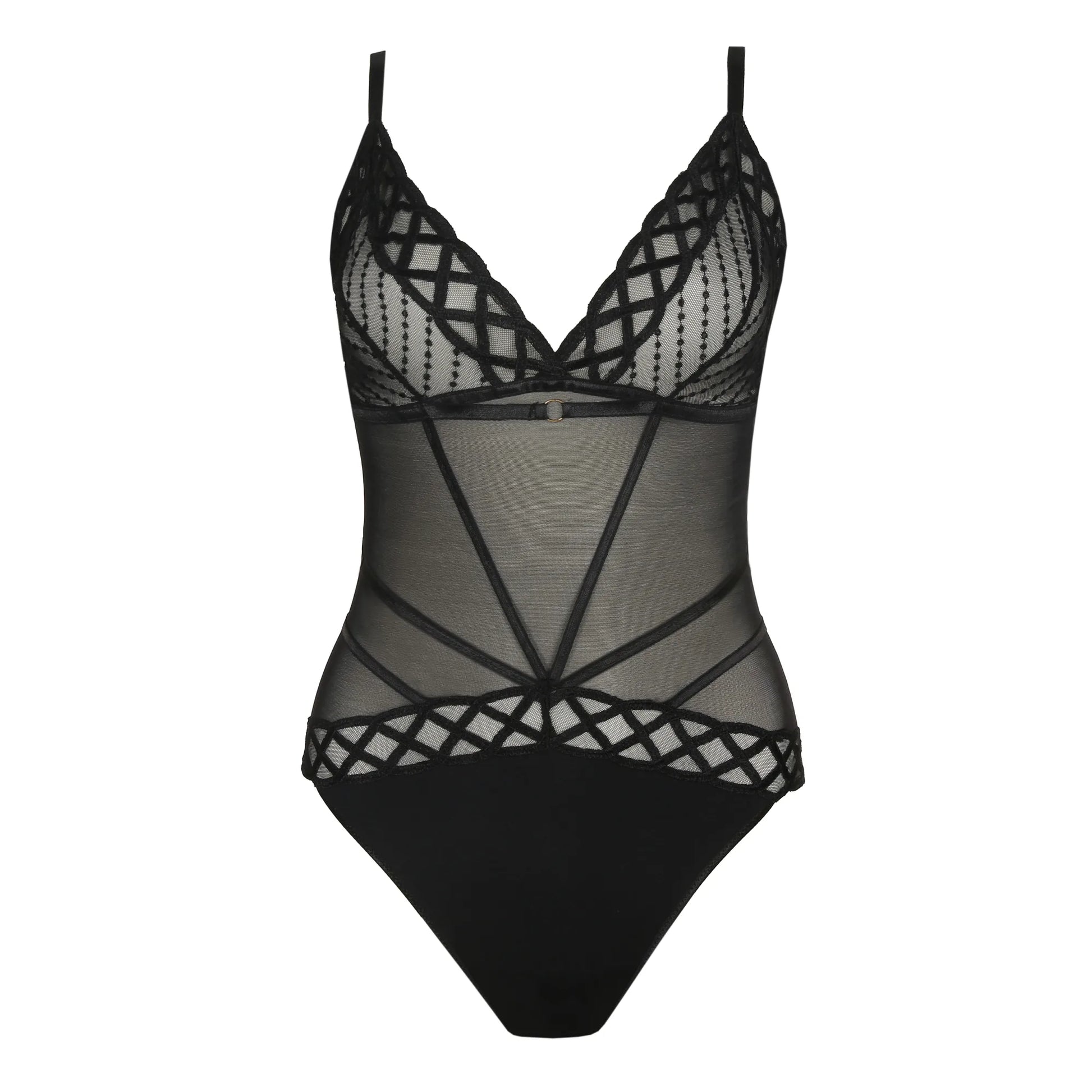 Be wowed by this bodysuit with a triangle look. Patterned lines that cross over onto the back give a feminine, sexy vibe. The back is also adorned with gold-toned details. Sexy Black can be worn year-round, even in summer.