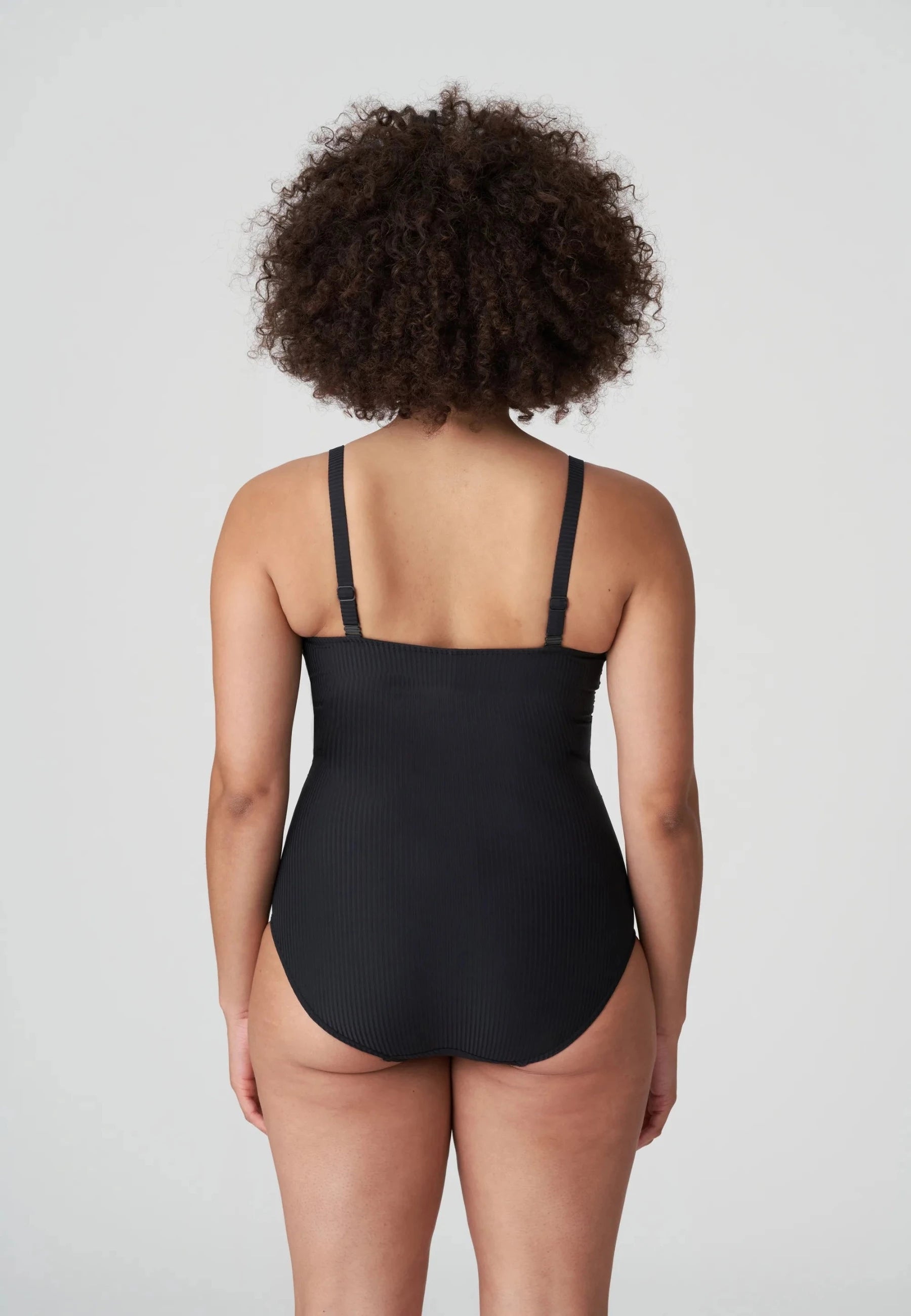 Elegant, control swimsuit in a striped fabric with a flattering retro cut. Elegant swimwear in timeless black: a match made in heaven!