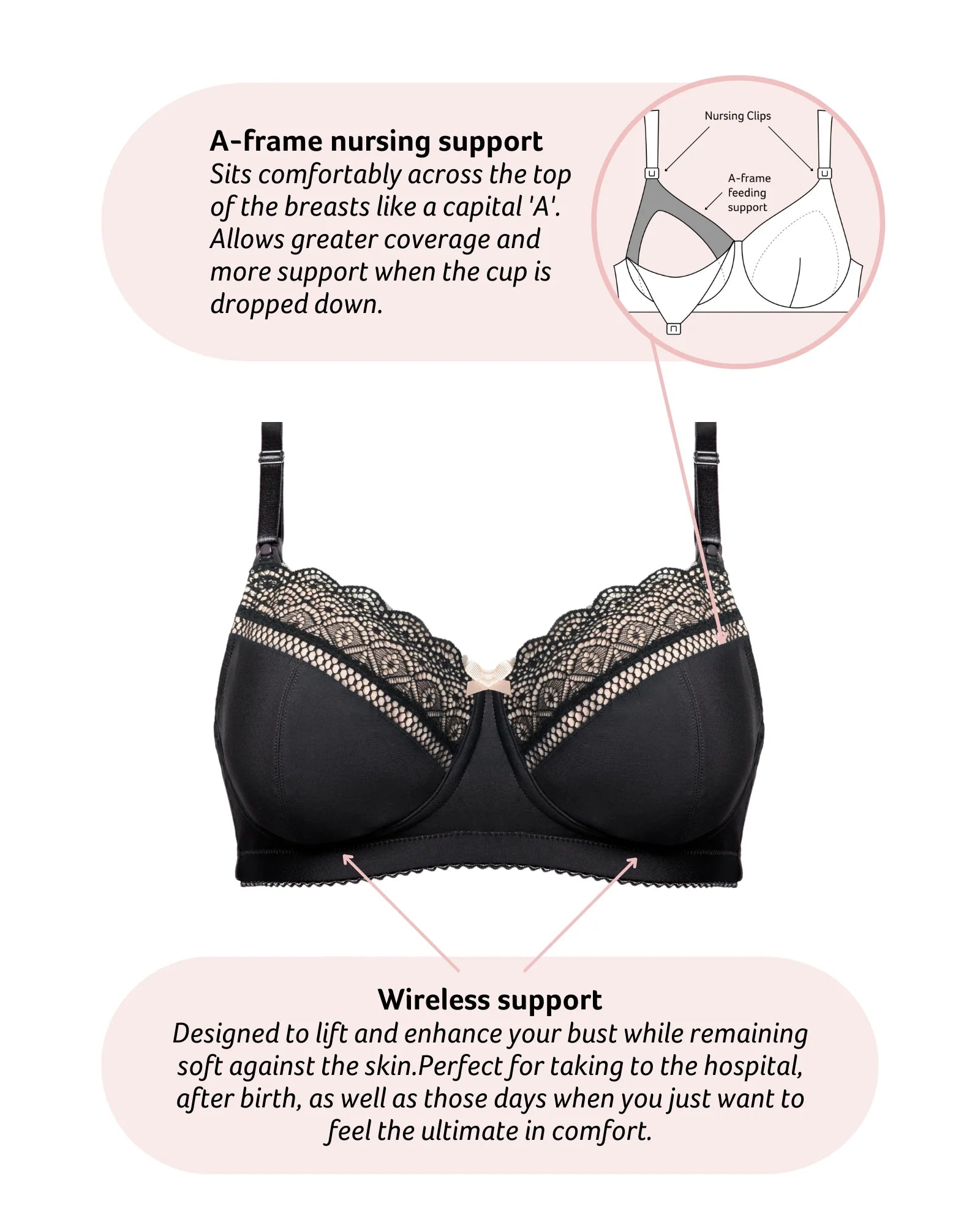 Our longest-standing style—loved for a reason. The award-winning Show Off nursing bra delivers buttery-soft comfort, reliable support, and timeless style. With full coverage cotton-lined cups, A-frame nursing support, and a flexible wirefree underbust band, it’s designed to move with you from pregnancy to postpartum. Trusted by generations of mums, now named the best wireless nursing bra by The New York Times.